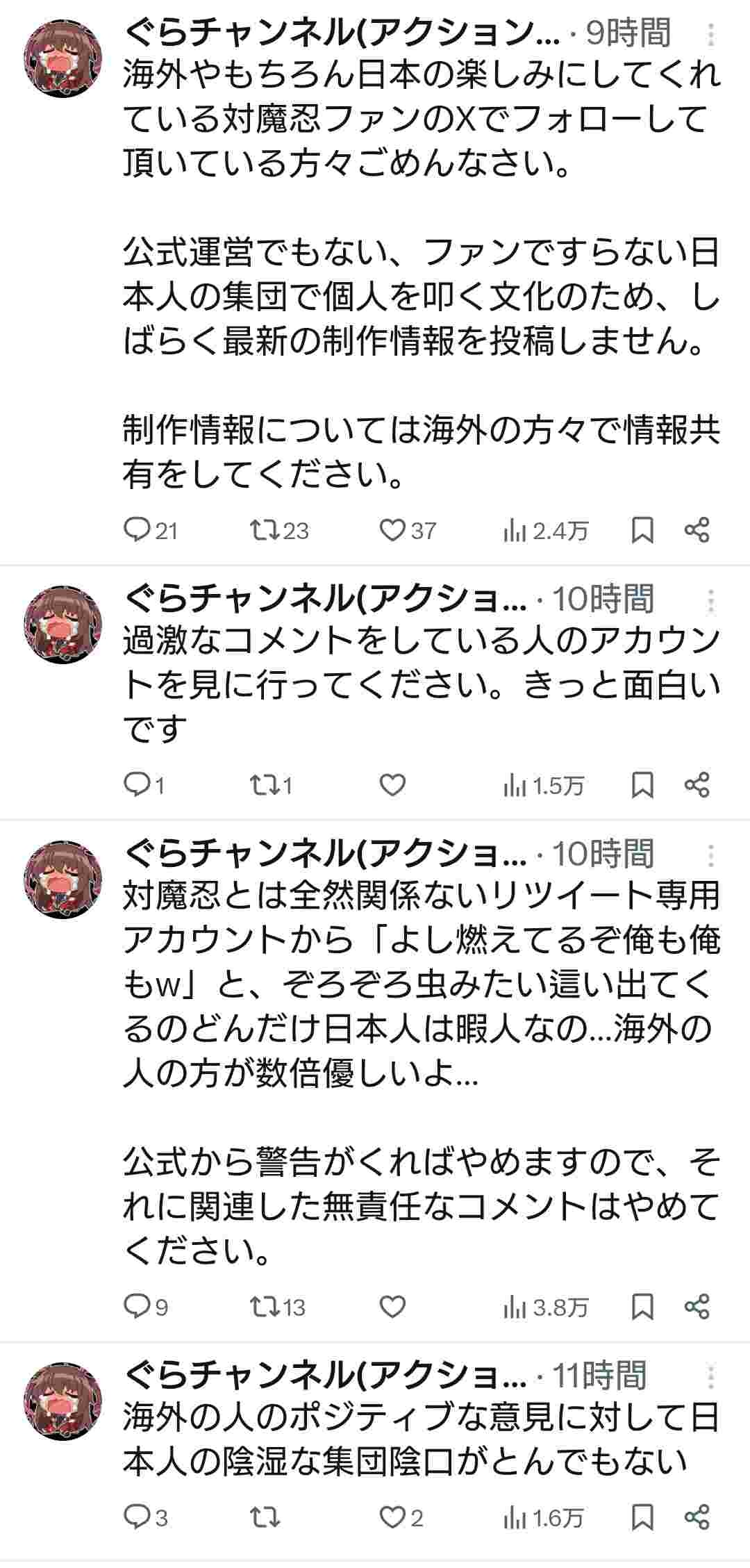 - 見に行ったら海外からの擁護0だったし外人のポジティブな反応も精々対魔忍ファンが無言でRTしてるくらいで草