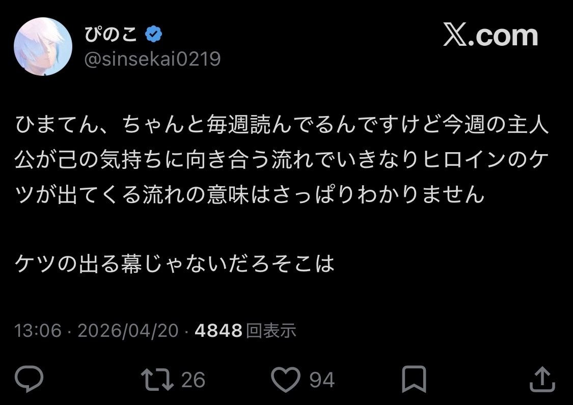 26 名前:ここからは表現の自由でイカせていただきます 投稿日時:2026/04/21(火) 10:15:29.319 ID:T7lDbYV.z