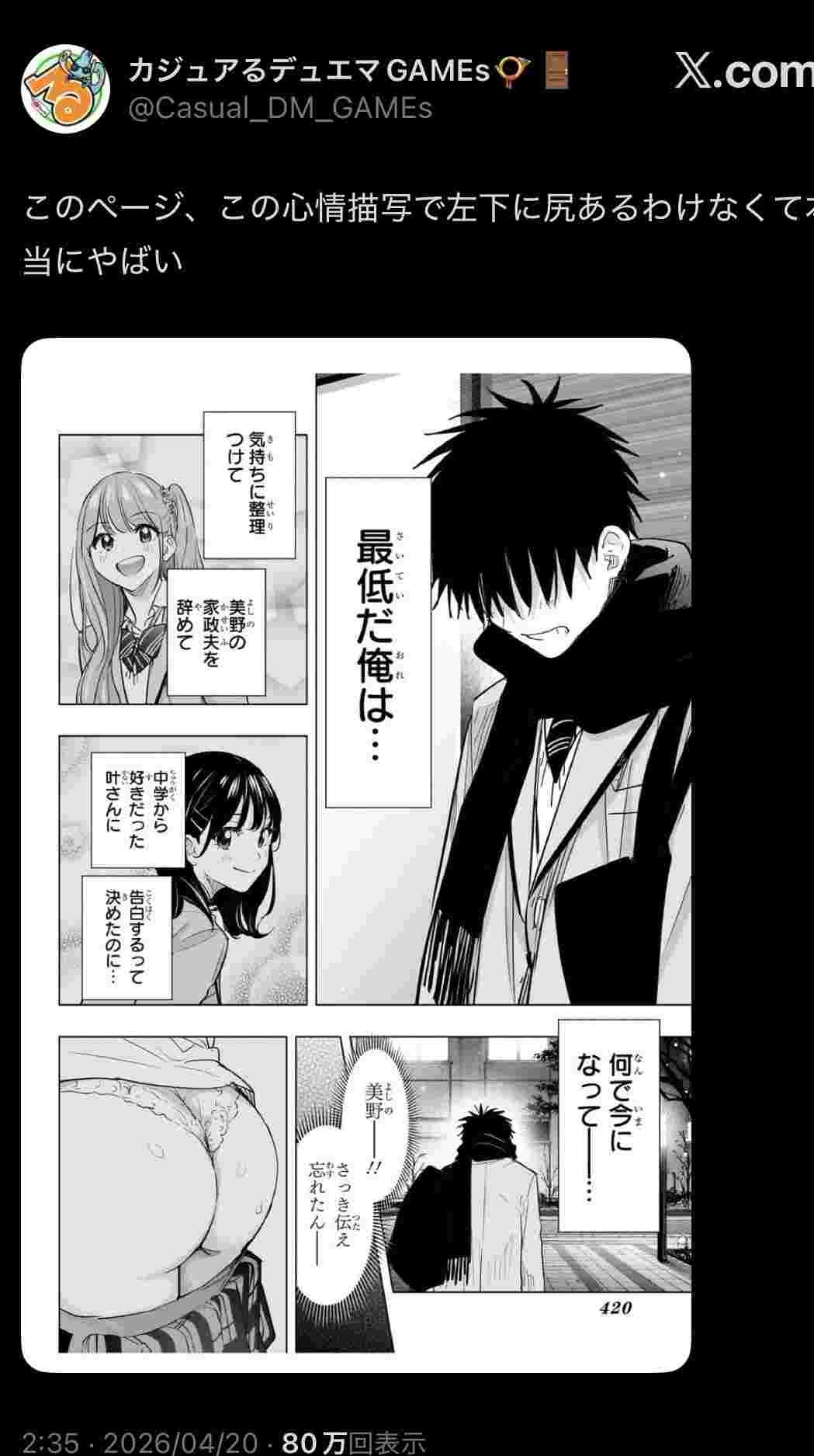 これ何も知らんやつはエ口い女見て好きになっちゃったみたいな印象何やろうけどそんなレベルちゃうからなこのキチゲェ主人公