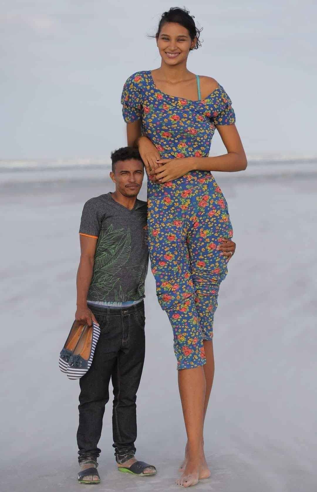 彼女の夫フランシナウド・ダ・シウヴァ・カルヴァーリョ(身長1.62m)。
