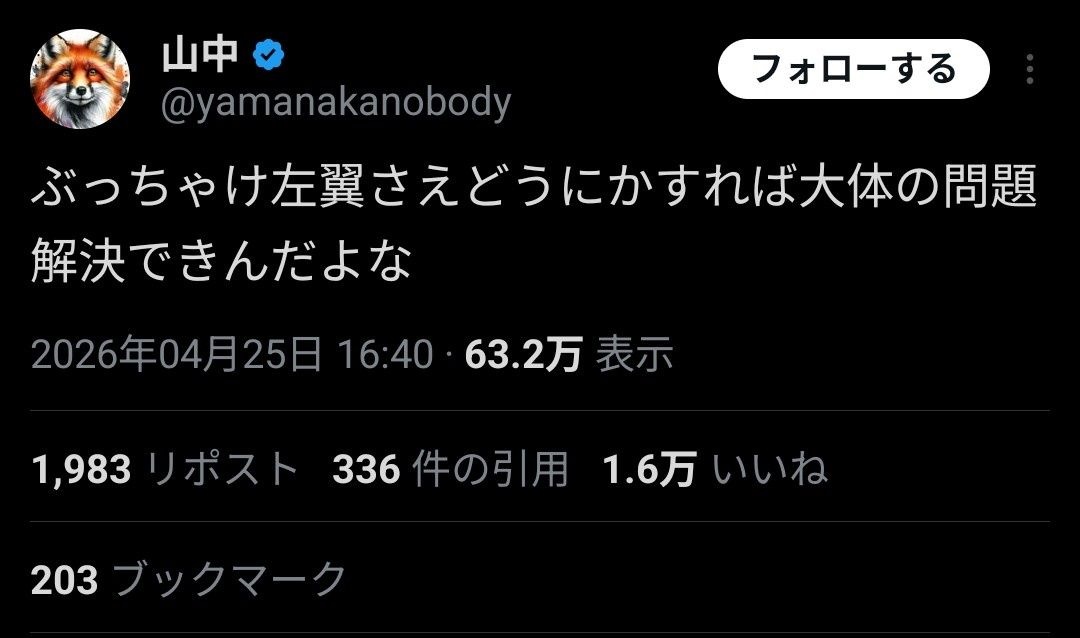 - 9 名前:ここからは表現の自由でイカせていただきます 投稿日時:2026/04/26(日) 21:55:21.445 ID:A/NkdYTUh