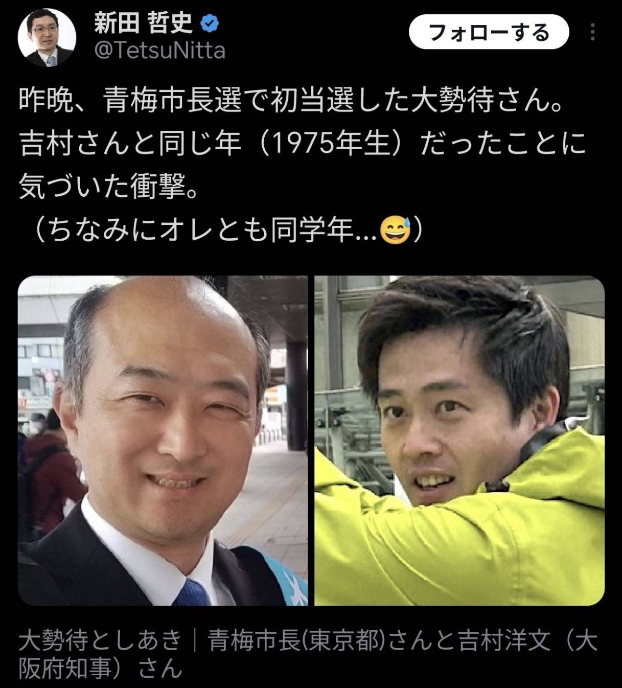 政治家でイケメンって少ないしそら吉村人気出るわ周りとの相対評価も相まって