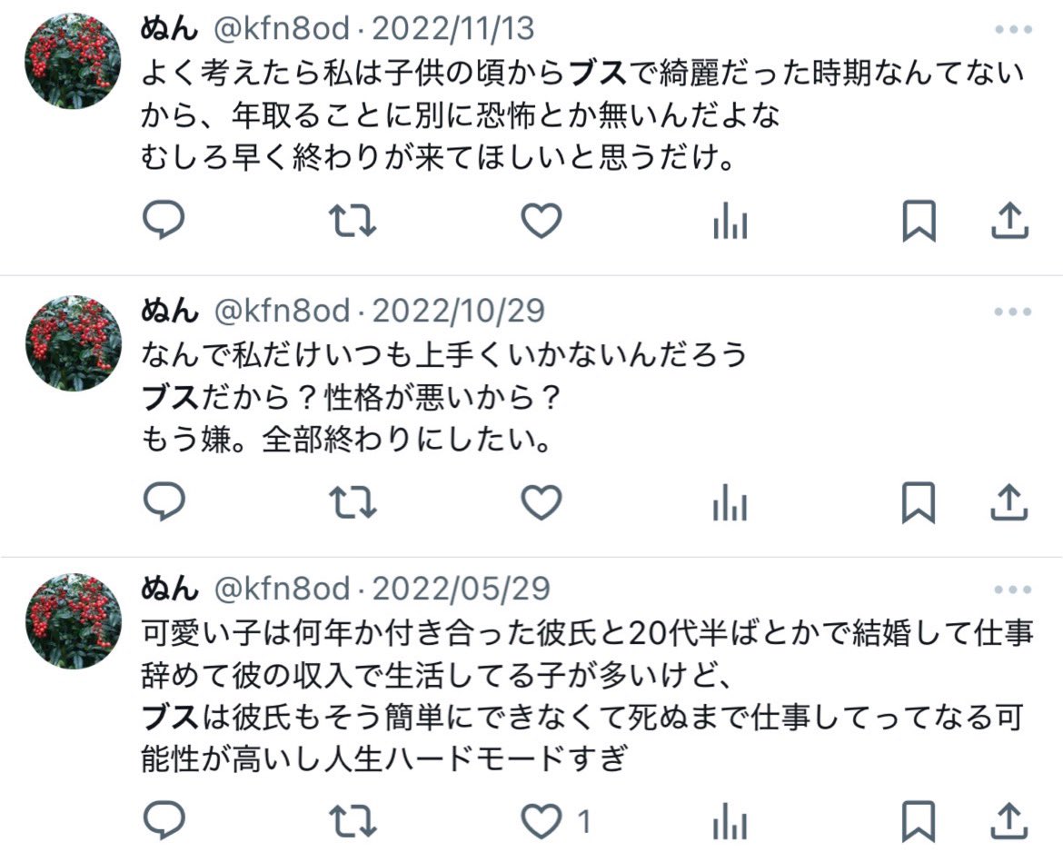 ブスだけど夫も子供もいる女なんか腐るほどいるから、性格の問題だろ