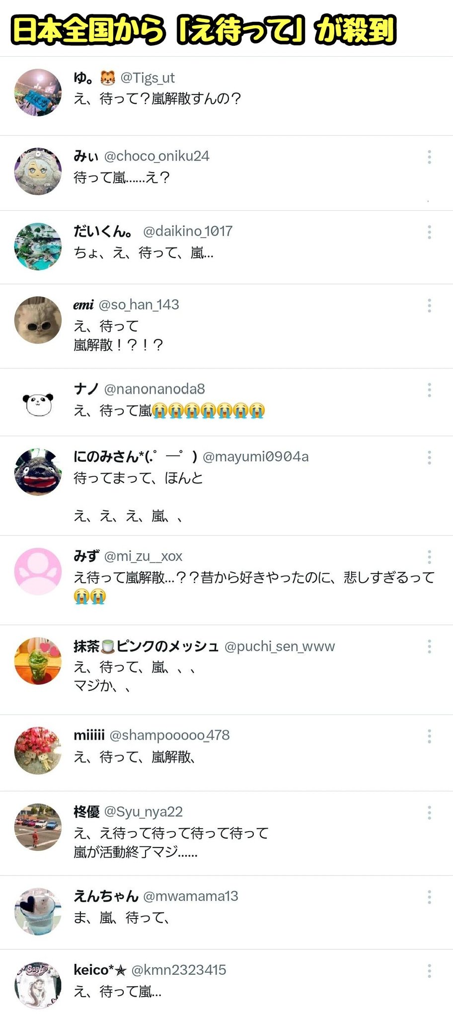 嵐「解散します」まんさん「「「「「「「「「「「え、待って」」」」」」」」」」」