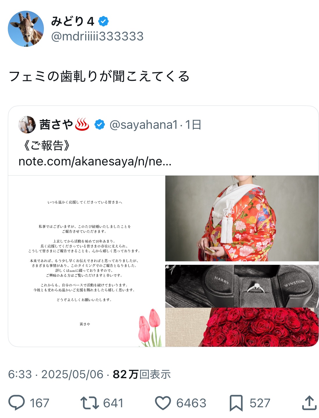 AVとか行ったら普通の結婚できないから正解だわ - 35 名前:ここからは表現の自由でイカせていただきます 投稿日時:2025/05/07(水) 18:00:05.35 ID:H/JuW4Mj0