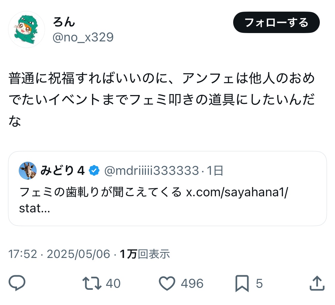 ああ、この人か - 46 名前:ここからは表現の自由でイカせていただきます 投稿日時:2025/05/07(水) 18:05:14.34 ID:2amKxRSF0