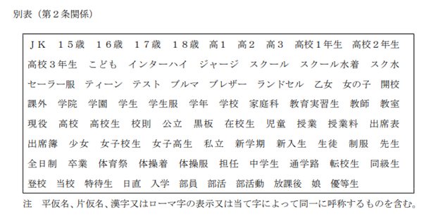 >東京都の特定異性接客営業等の規制に関する条例での規制ワード