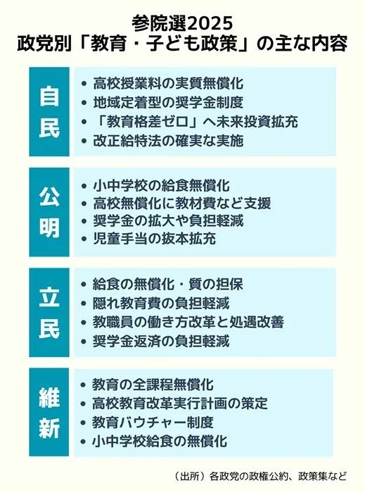参院選公示 「無償化」「奨学金」など各政党が教育負担の軽減訴え
