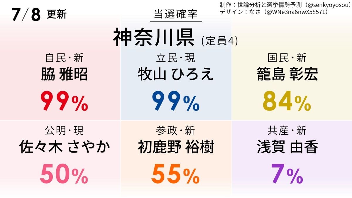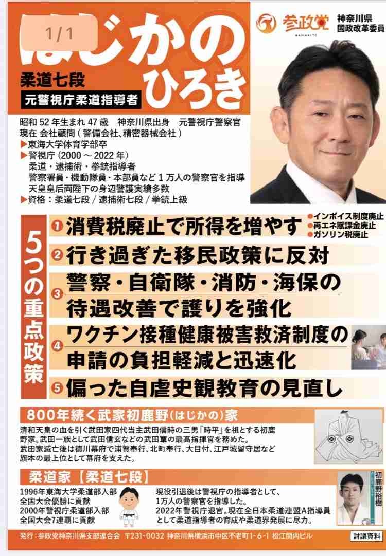 神奈川選挙区、参政党の初鹿野裕樹当確へ。怖いか?参政党が与党になるのが