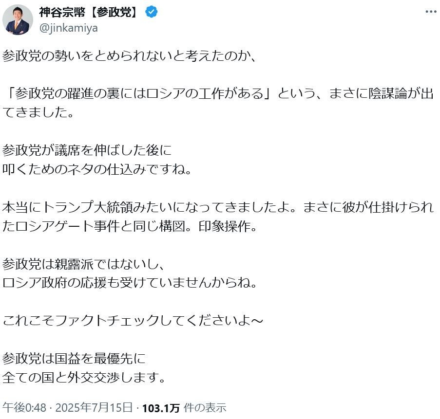 参政党「陰謀論バカが何か言ってる!!!」