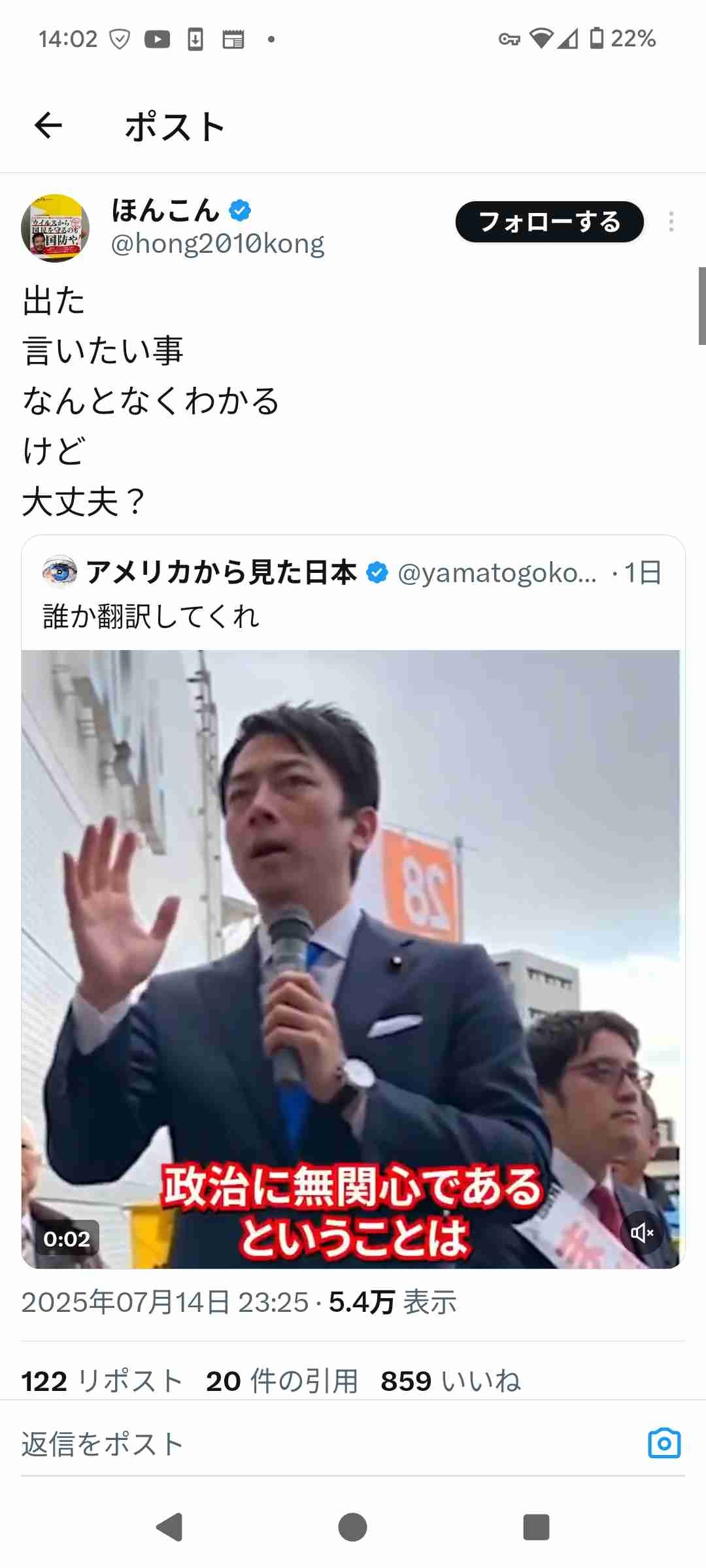 ほんこん さん「小泉進次郎の日本語マジで分からん。なんとなく分かるけど分からん。キチンとした日本語で喋ろ」