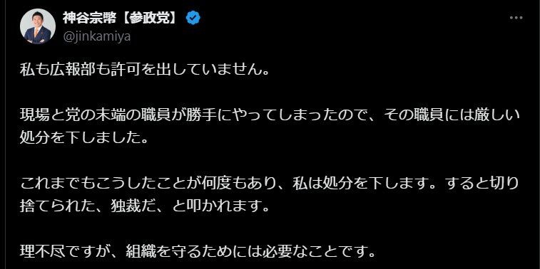 依頼を受けたら赤旗にだって取材をうけますよ??って言えば火消できてたのに、何故か末端の職員が勝手にー!!って謎の自爆をかましたのは神谷さんのミスだと思うんですけど