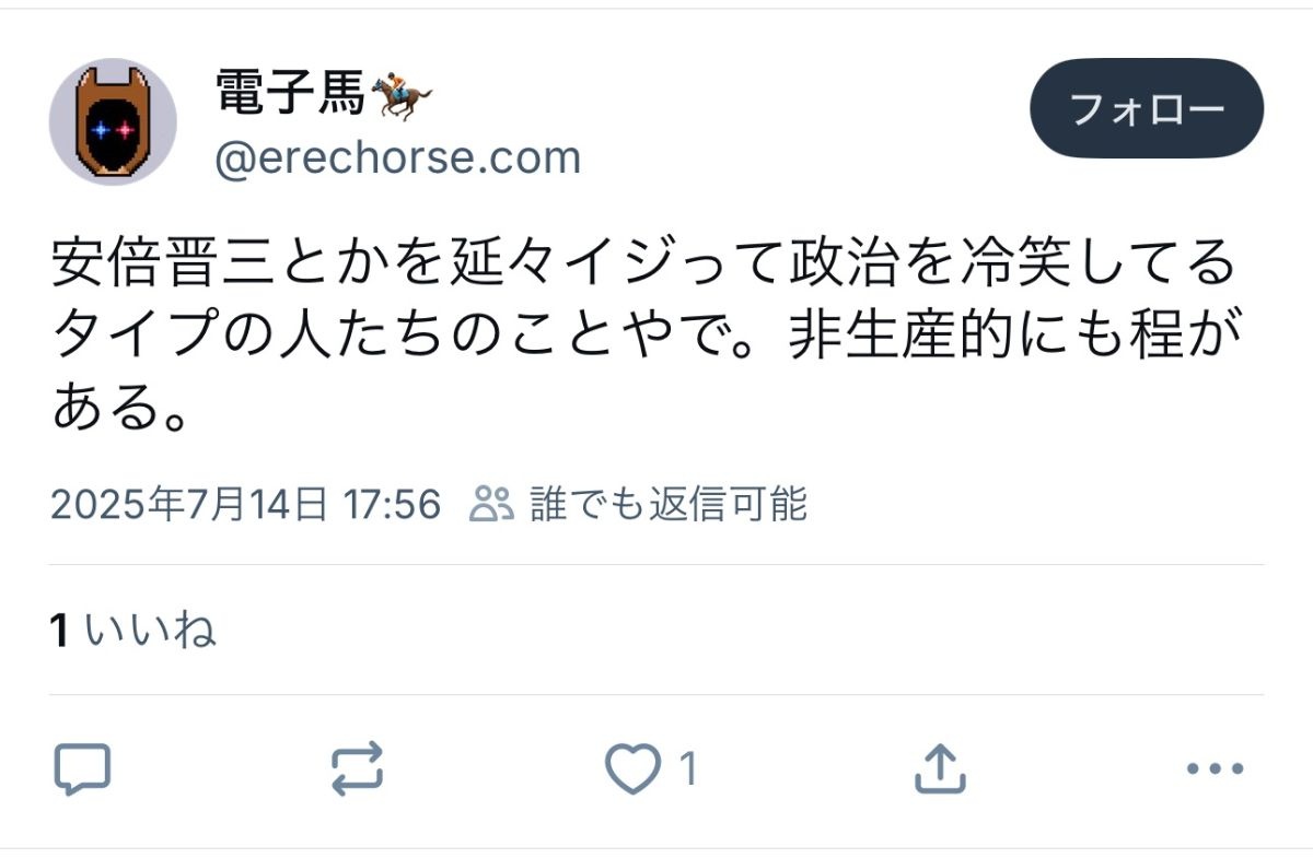 - 安倍晋三を憎んで参政にいれるやつなんかいるわけないじゃん