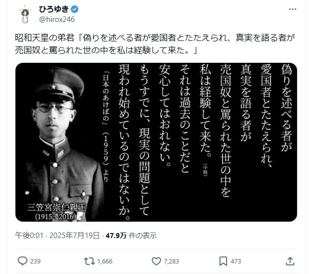 らくらく後追いパクリツイートかよ - 278 名前:ここからは表現の自由でイカせていただきます 投稿日時:2025/07/19(土) 16:27:24.32 ID:qupkyoIF0