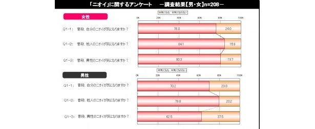 気になる男性は今回のアンケートを参考に、ニオイに対する認識を高めておいた方が良さそうだ