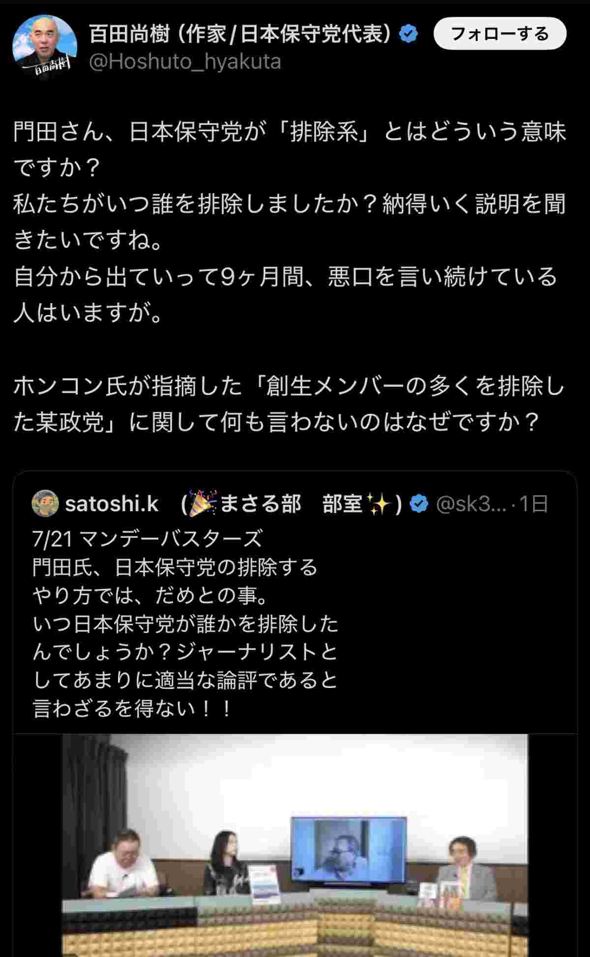 - 百田有本が一生内ゲバ繰り返して支持者も呆れ返ってる