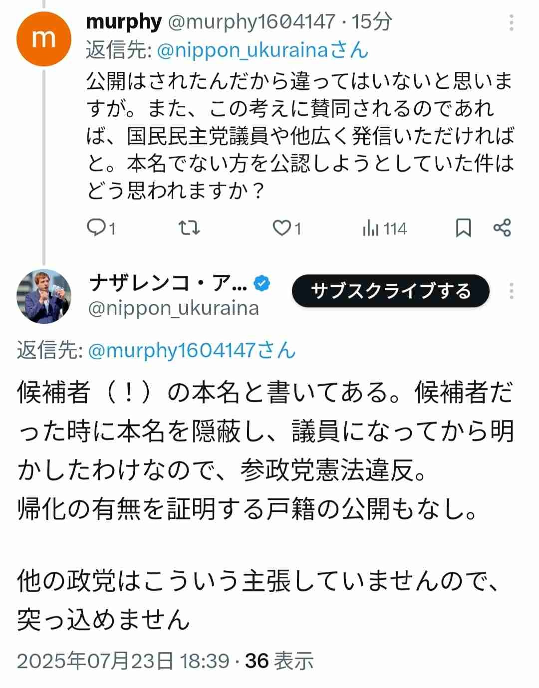 参政党の基準でナザレンコは日本人ではないから - 126 名前:ここからは表現の自由でイカせていただきます 投稿日時:2025/07/23(水) 19:27:02.61 ID:kFw61cXV0