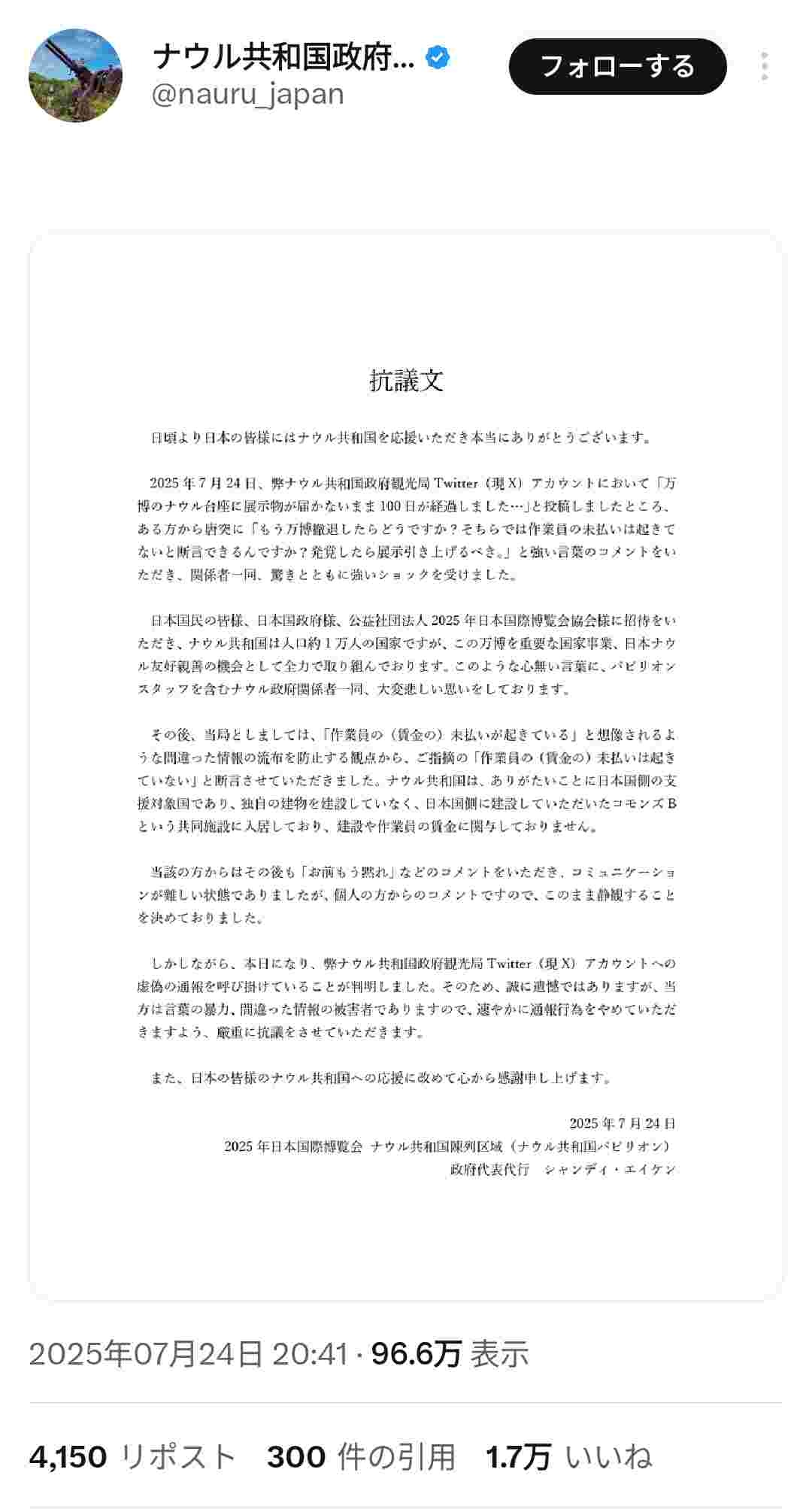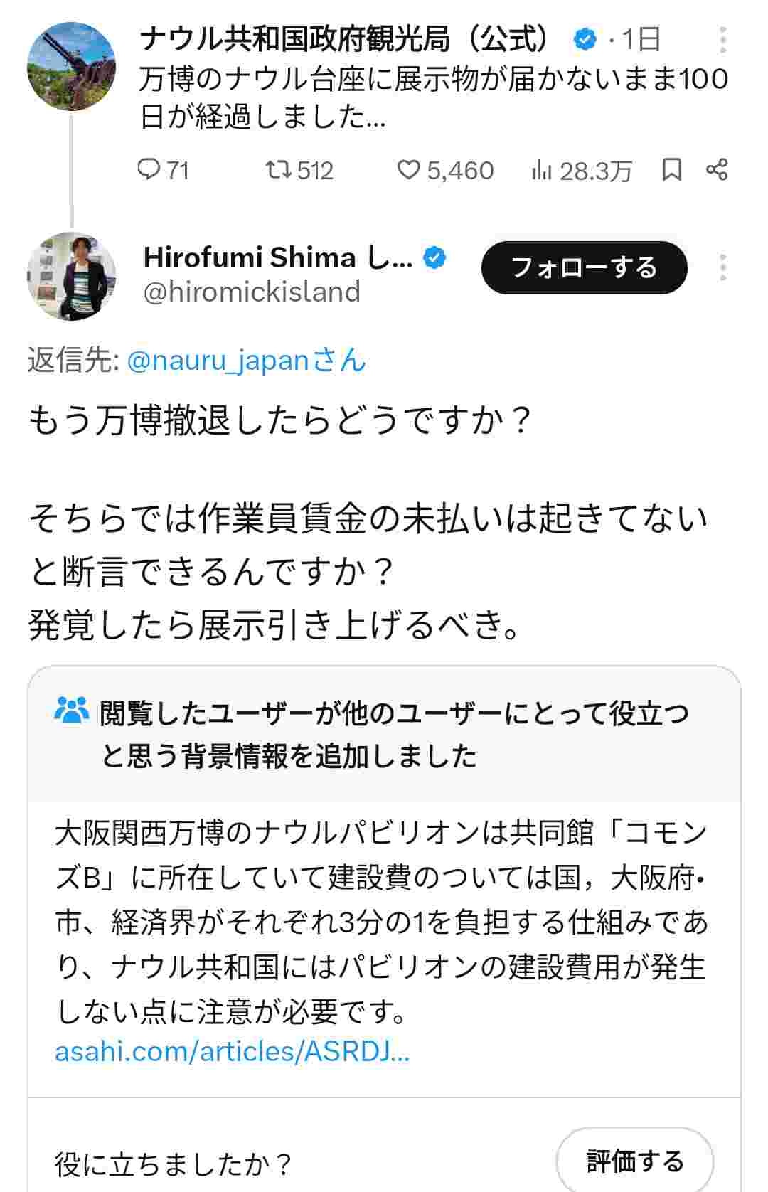 左のネトウヨさん、オセアニアの小国に「万博撤退しろ!」と因縁をつけ政府から正式に抗議される