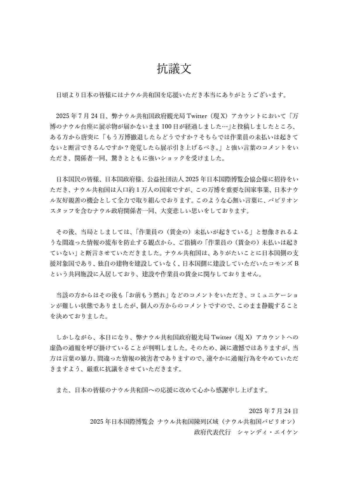これナウル本国は認識してんのかな - 125 名前:ここからは表現の自由でイカせていただきます 投稿日時:2025/07/24(木) 22:42:40.35 ID:EZjxEVF2M