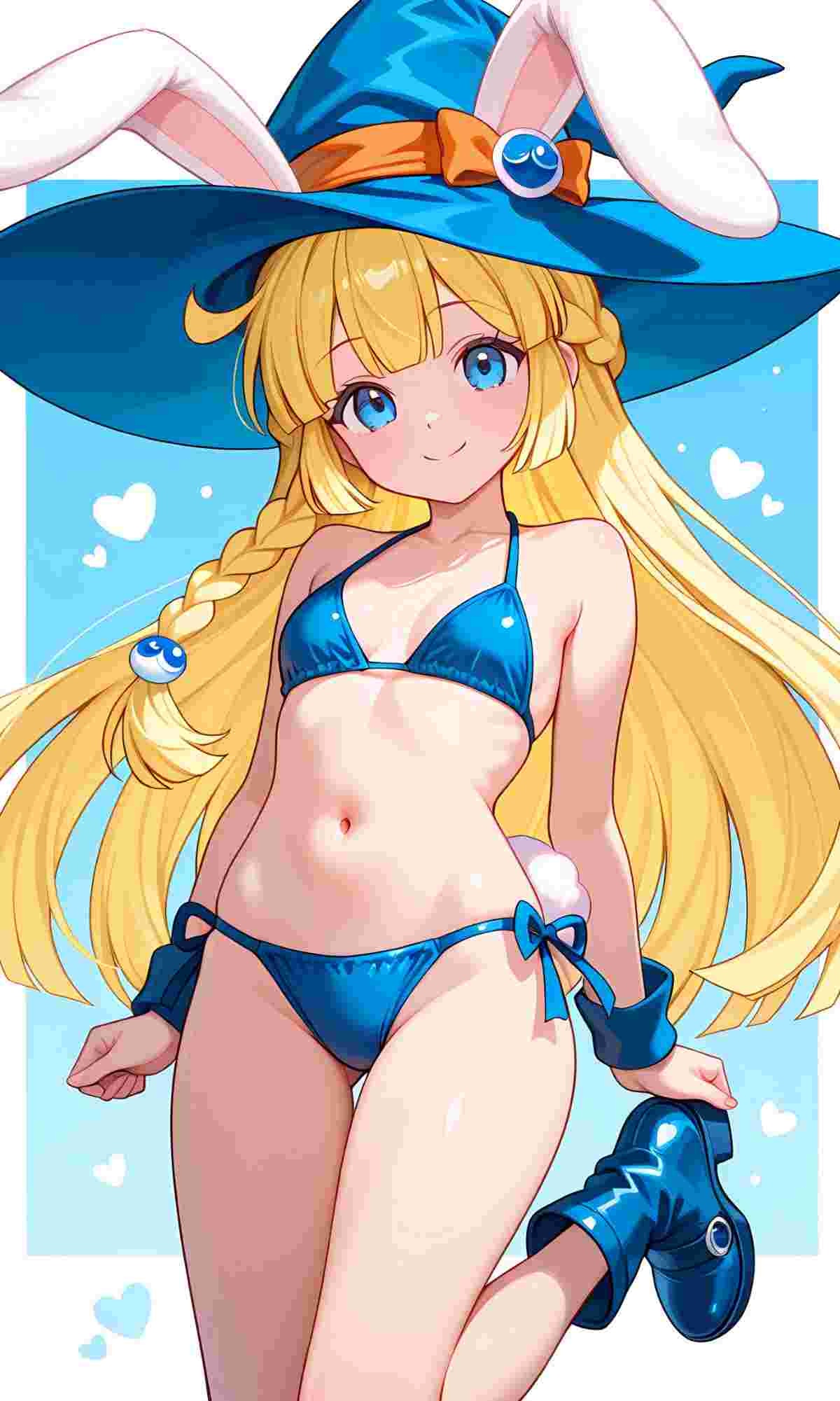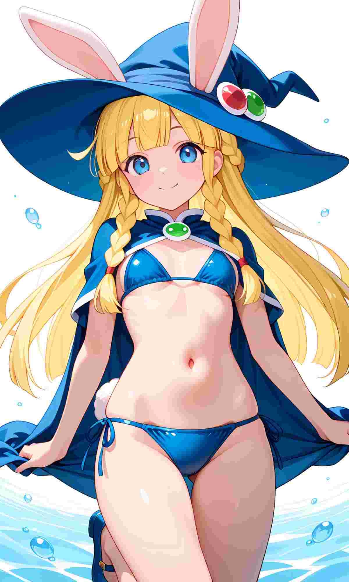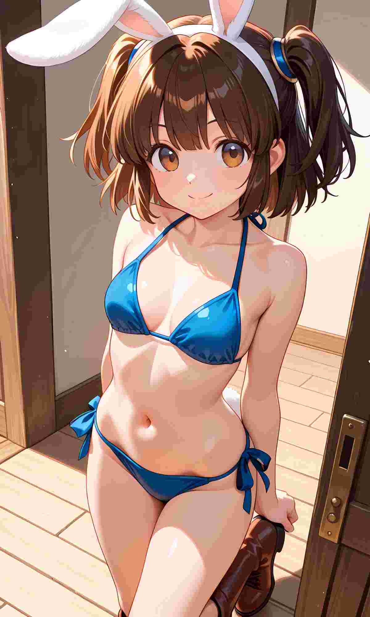 ※AIイラスト、おへそが見える水着姿バージョンウサギの女の子「ウェンディちゃん」