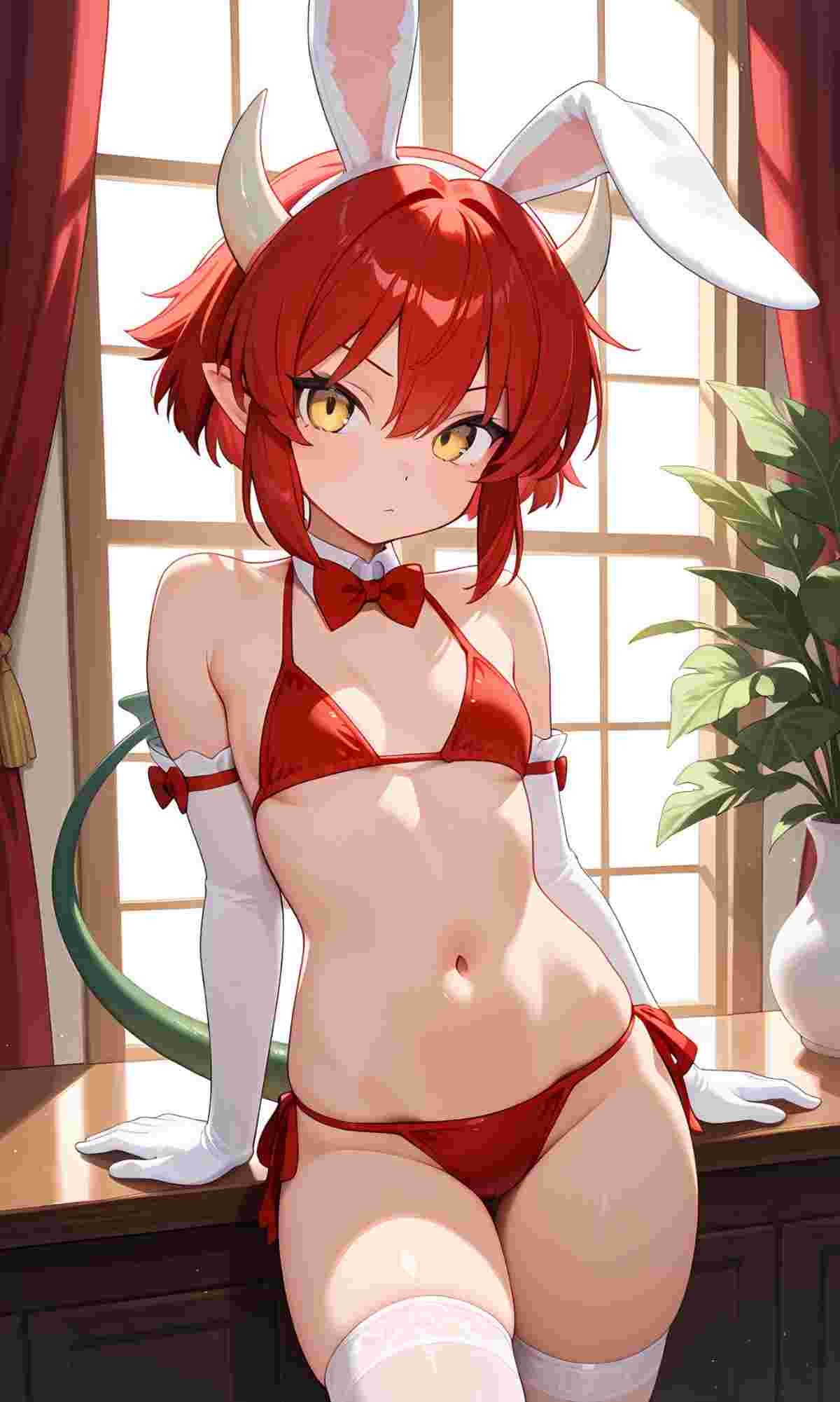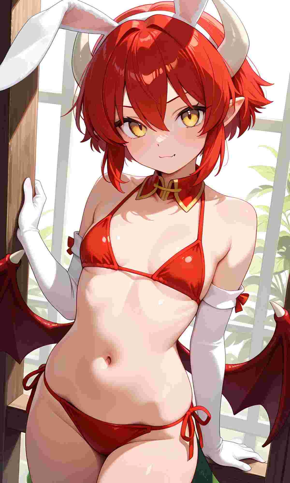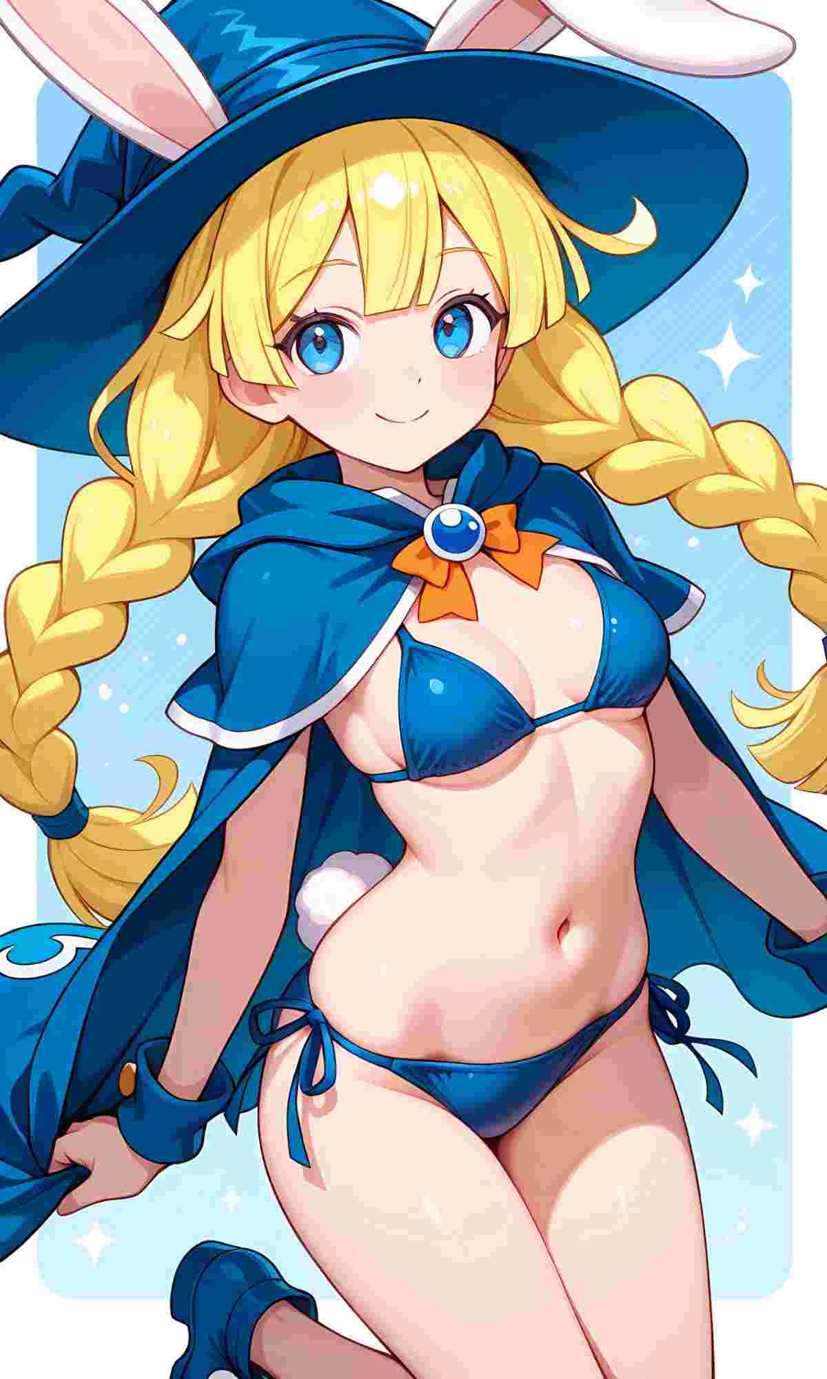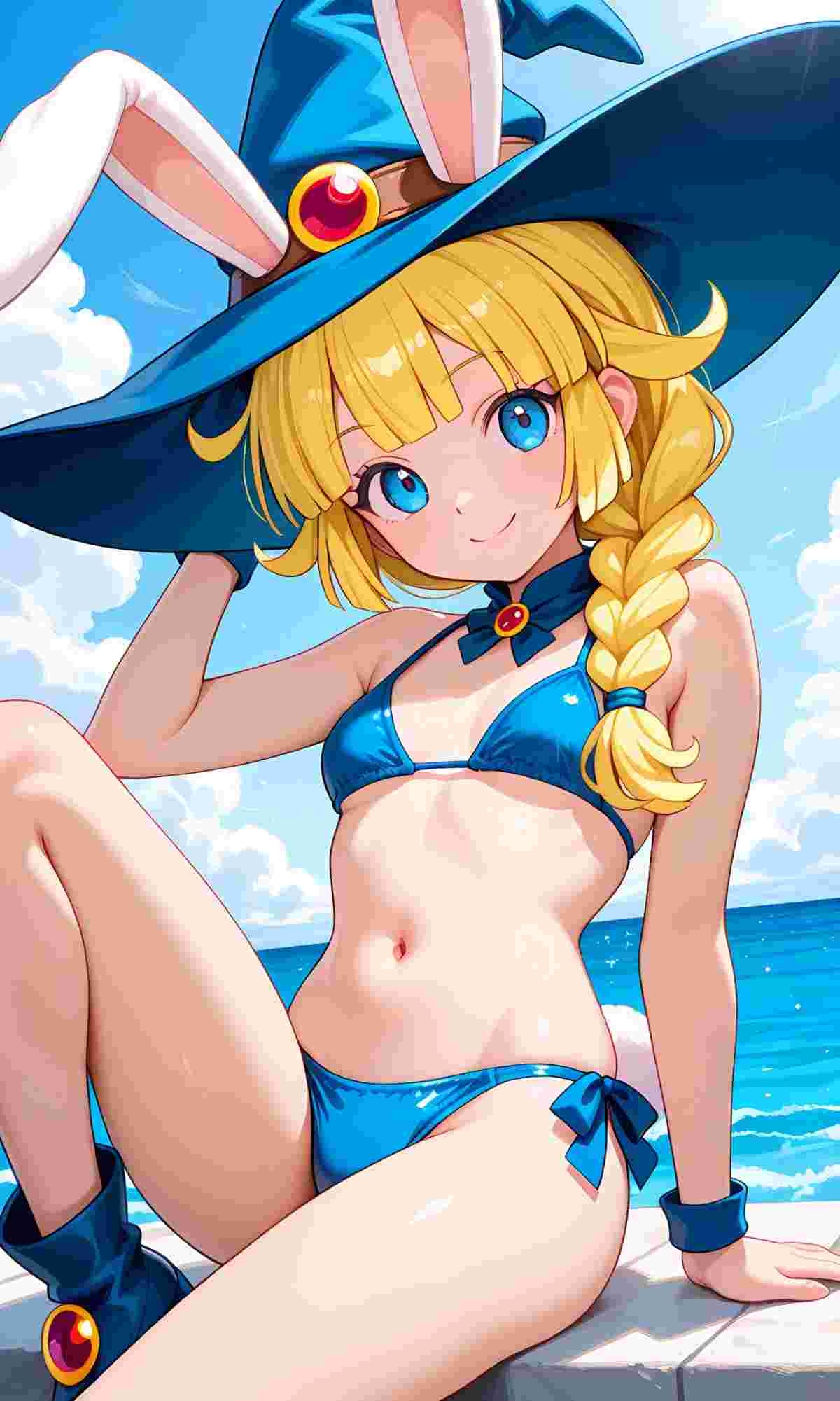※AIイラスト、おへそが見える水着姿バージョンウサギの女の子「ウェンディちゃん」