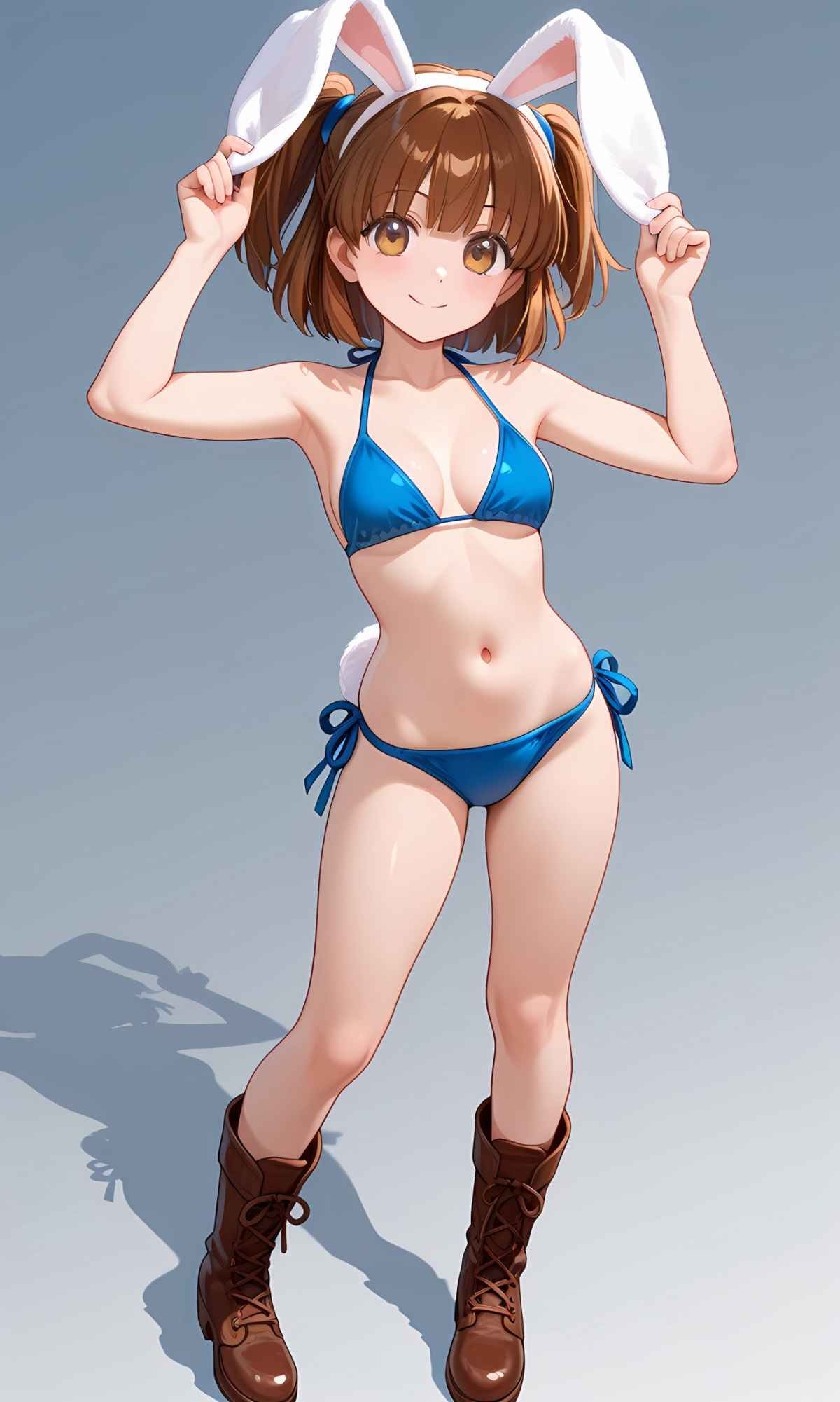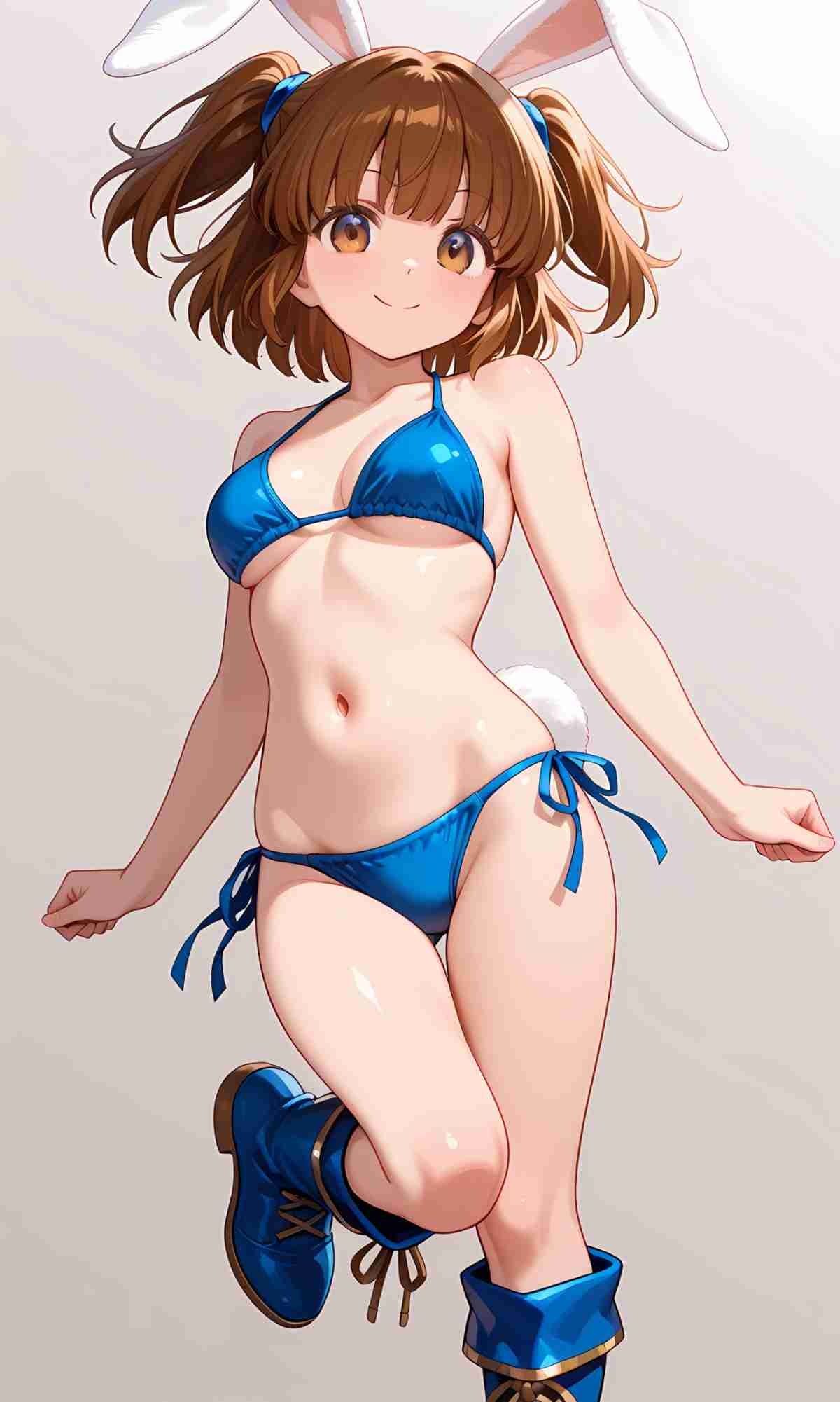 ※AIイラスト、全裸バージョン、マン毛ありバージョン。おぱーいとおへそが素晴らしい!ウサギの女の子「パシフィカちゃん」
