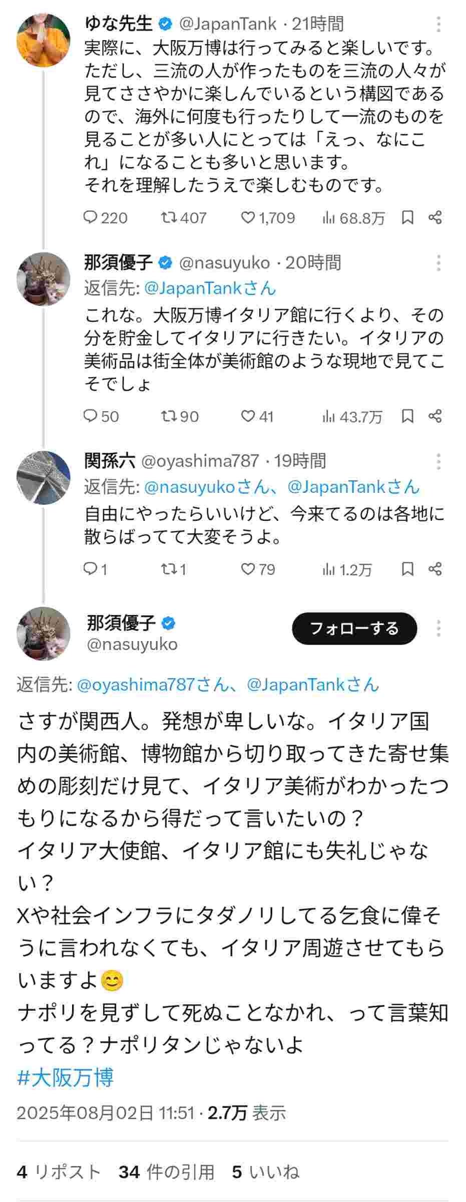 https://x.com/nasuyuko/status/1951475946797904124?t=xG9kfJQYdrQ1rUD4GvRpPg&s=19 - 3 名前:ここからは表現の自由でイカせていただきます 投稿日時:2025/08/03(日) 06:49:53.07 ID:0XS7SW280