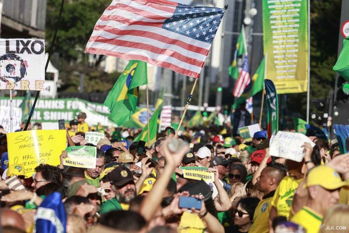 【リオデジャネイロAFP時事】ブラジルでクーデターを企てた罪で公判中のボルソナロ前大統領の支持者ら数千人が3日、リオデジャネイロなど複数の都市でデモを行い、同氏の裁判中止を求めてブラジルに圧力をかけるトランプ米大統領の動きを歓迎した。