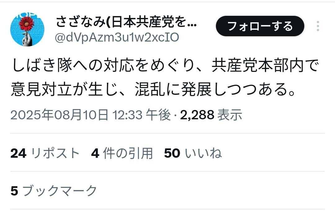 いまさらしばき隊を拒絶しても、逆恨みされて共産党がターゲットにされるだけだろ