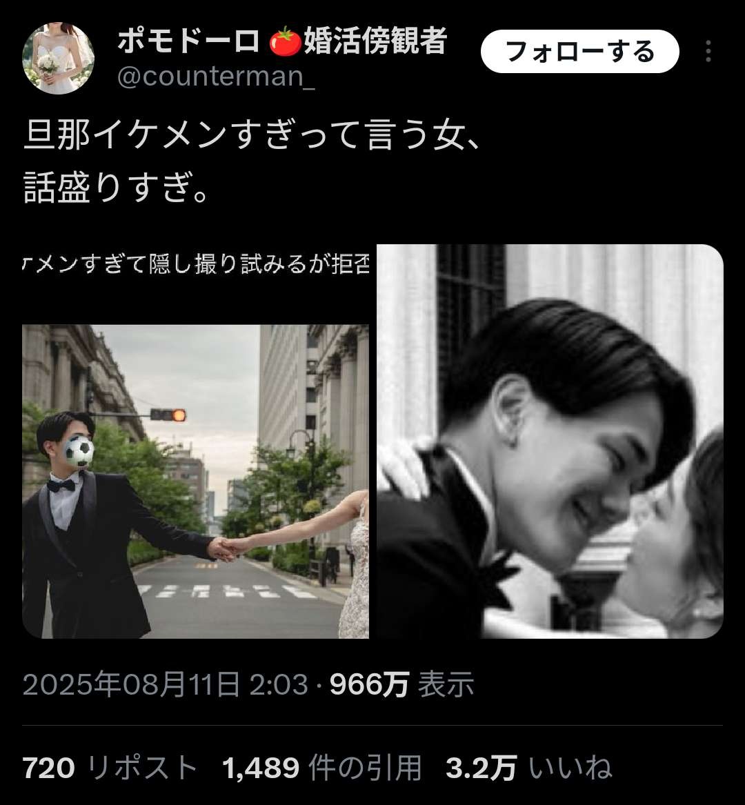 【画像】女「夫がイケメンすぎて隠し撮り試みた」→これイケメン…?