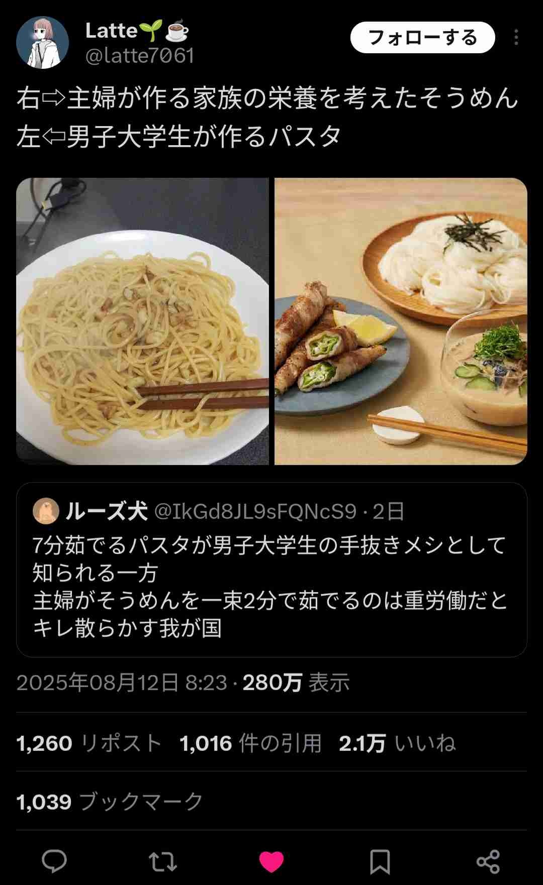 【正論】「私が作るそうめんがこれで弱者男性がつくるパスタがこれ、これでもそうまんを作るめんどくさい言うはダメですか?」