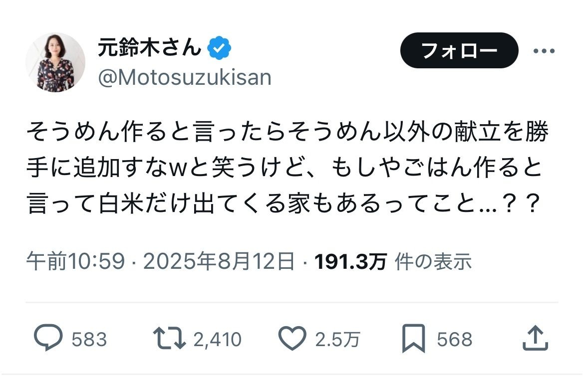 最低でもねぎ、生姜、すりごまくらいは用意して欲しいね - 24 名前:ここからは表現の自由でイカせていただきます 投稿日時:2025/08/13(水) 16:57:16.43 ID:SW53P1PpM