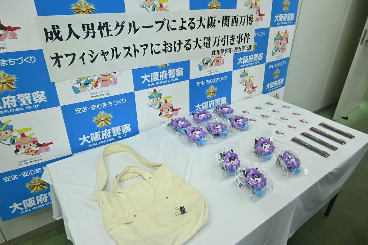 逮捕容疑は6月26日午後0時半ごろ、大阪市此花区の万博会場内のオフィシャルストア内で扇子などグッズ9点(販売価格計約7万4千円相当)を盗んだとしている。府警は転売目的だったとみて捜査を進めている。