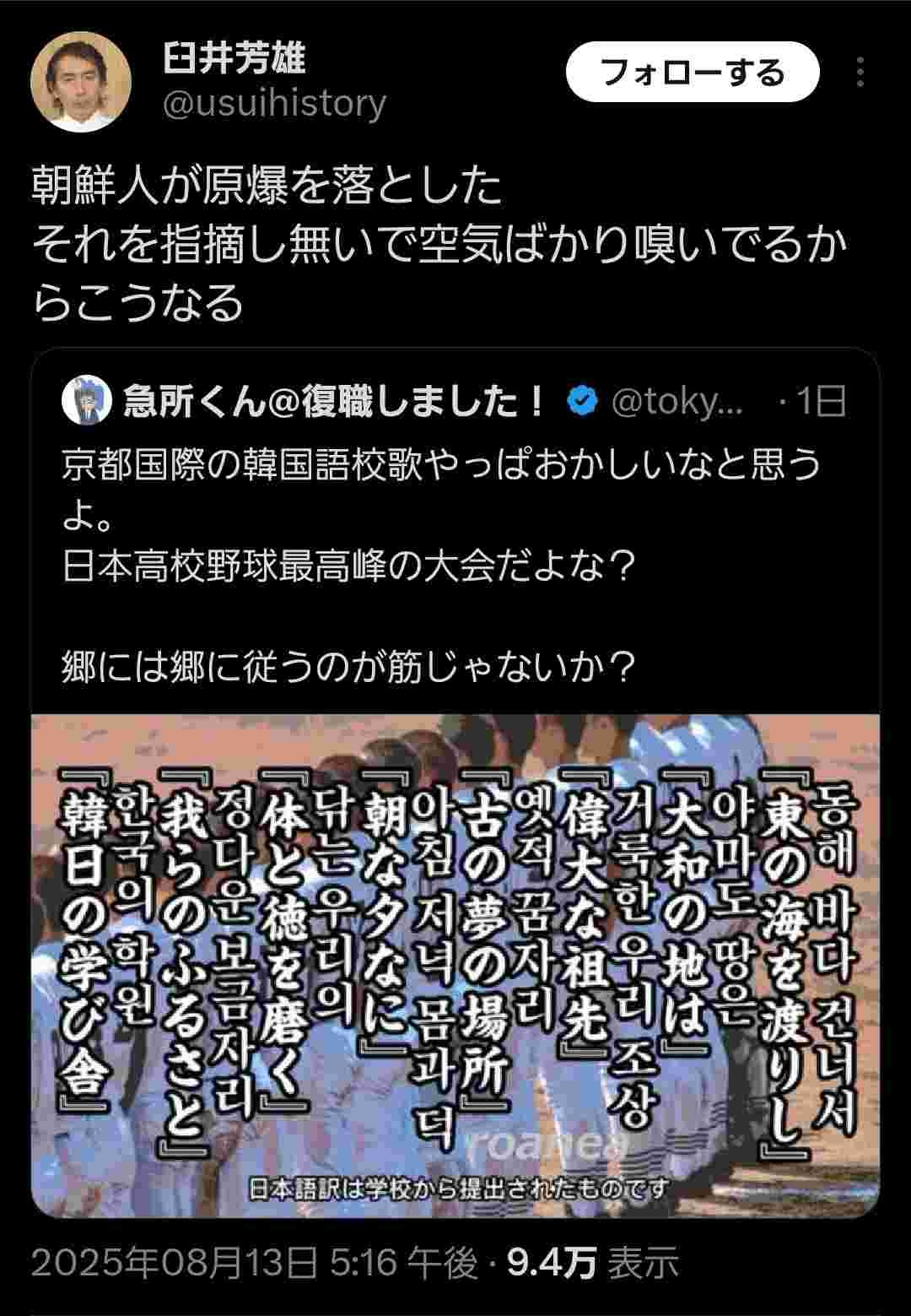 - 京都国際は連覇してネトウヨを発狂死させて欲しい