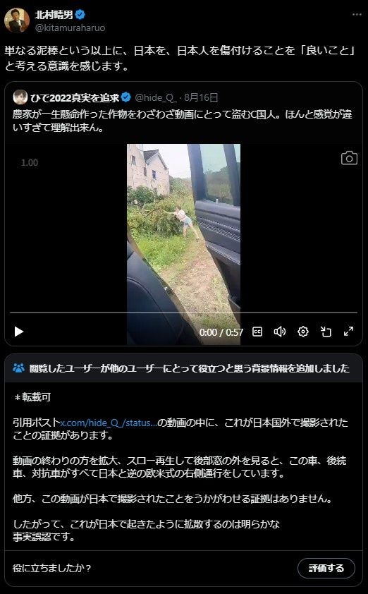 北村晴男議員「この動画見て!日本で中国人が泥棒してる!」 日本ではありませんでしたwww