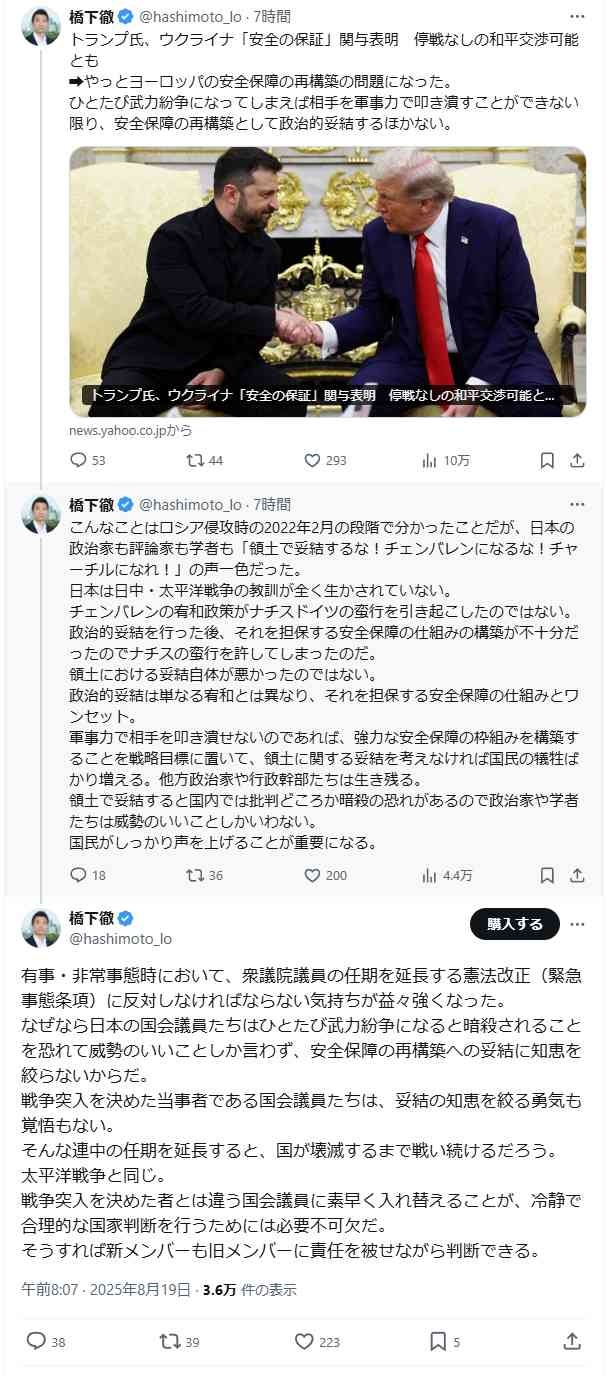 橋下が現実的な判断するなんて意外な話やけども - 51 名前:ここからは表現の自由でイカせていただきます 投稿日時:2025/08/19(火) 15:30:59.60 ID:w18ya/YKM