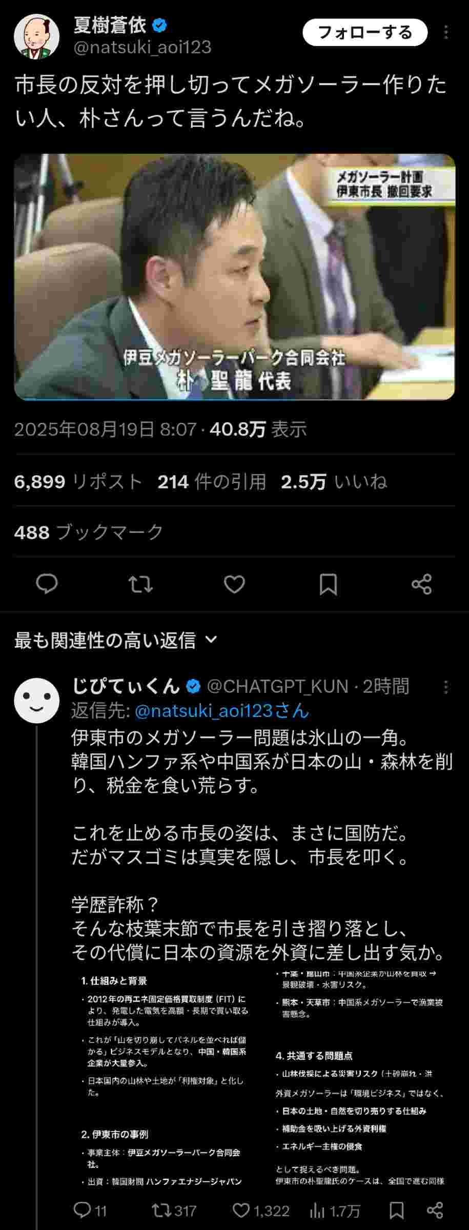 伊豆にメガソーラーを建設しようとしてたのは韓国人だった…愛国者「伊豆市長は国営を守る正義の人」