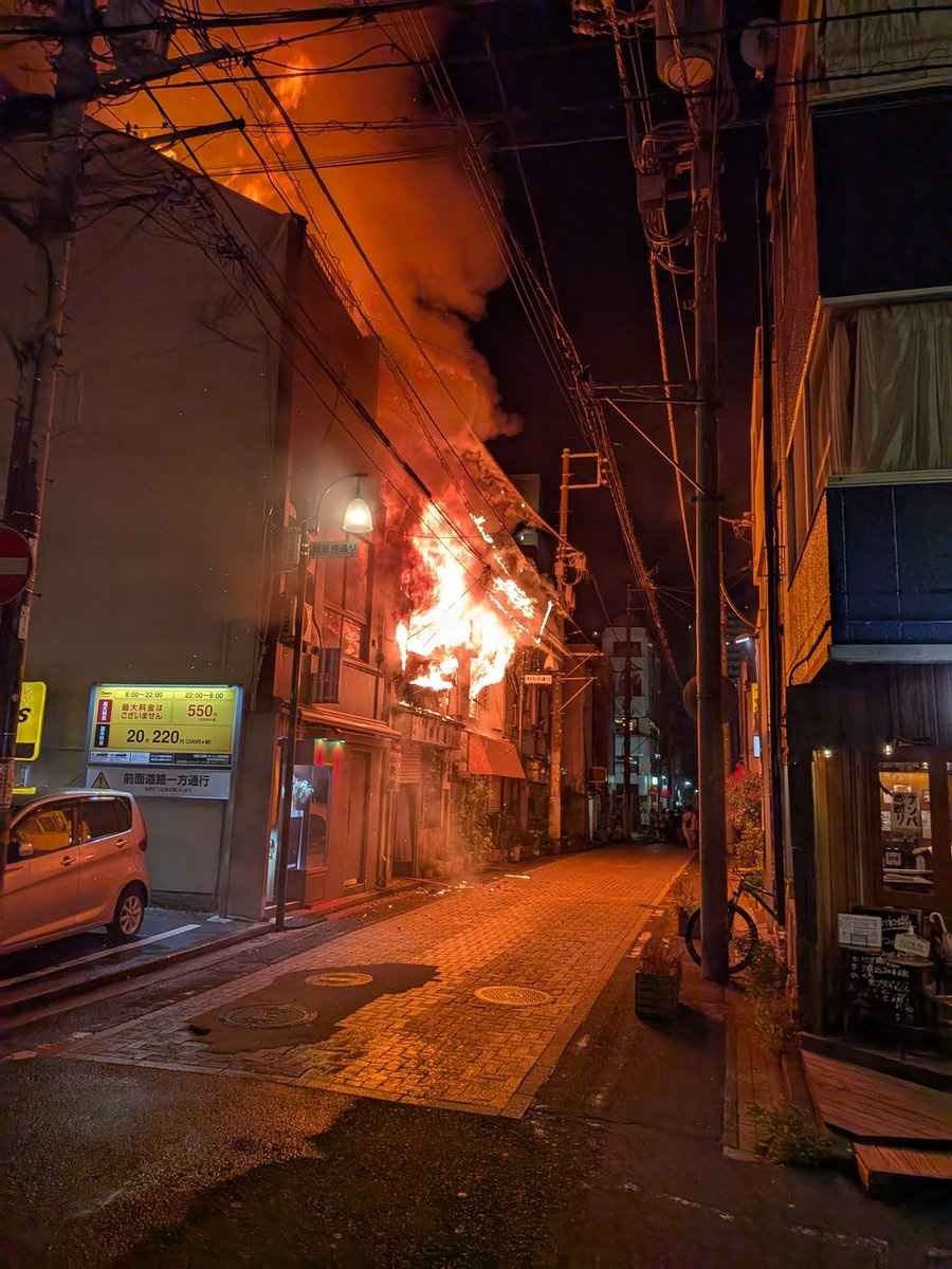 火事になる1時間前に斜め向かいの吉牛でメシ食ってたから自宅でニュース見て驚いた