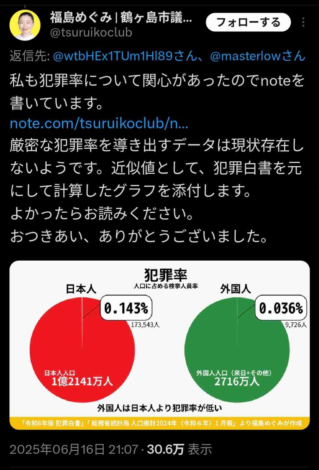 - ※外国人犯罪率は日本人ののわずか数千万分のイチ未満です