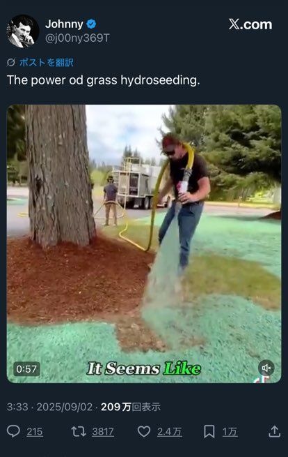 はい、ハイドロシーディングは本物の技術です。種子、マルチ、肥料、水のスラリーを噴霧して、裸地や傾斜地に素早く草を生やす方法です。浸食防止に効果的で、芝生を敷くよりも早く、安価な場合が多いですが、結果は土壌、水、気候に依存します。ビデオでは典型的なプロセスが示されています。