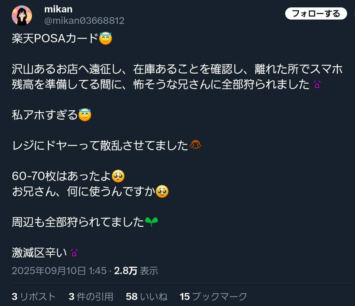 楽天ポイントをかうための金券カードってやつ - 45 名前:ここからは表現の自由でイカせていただきます 投稿日時:2025/09/10(水) 14:12:06.41 ID:v4T0xqWt0