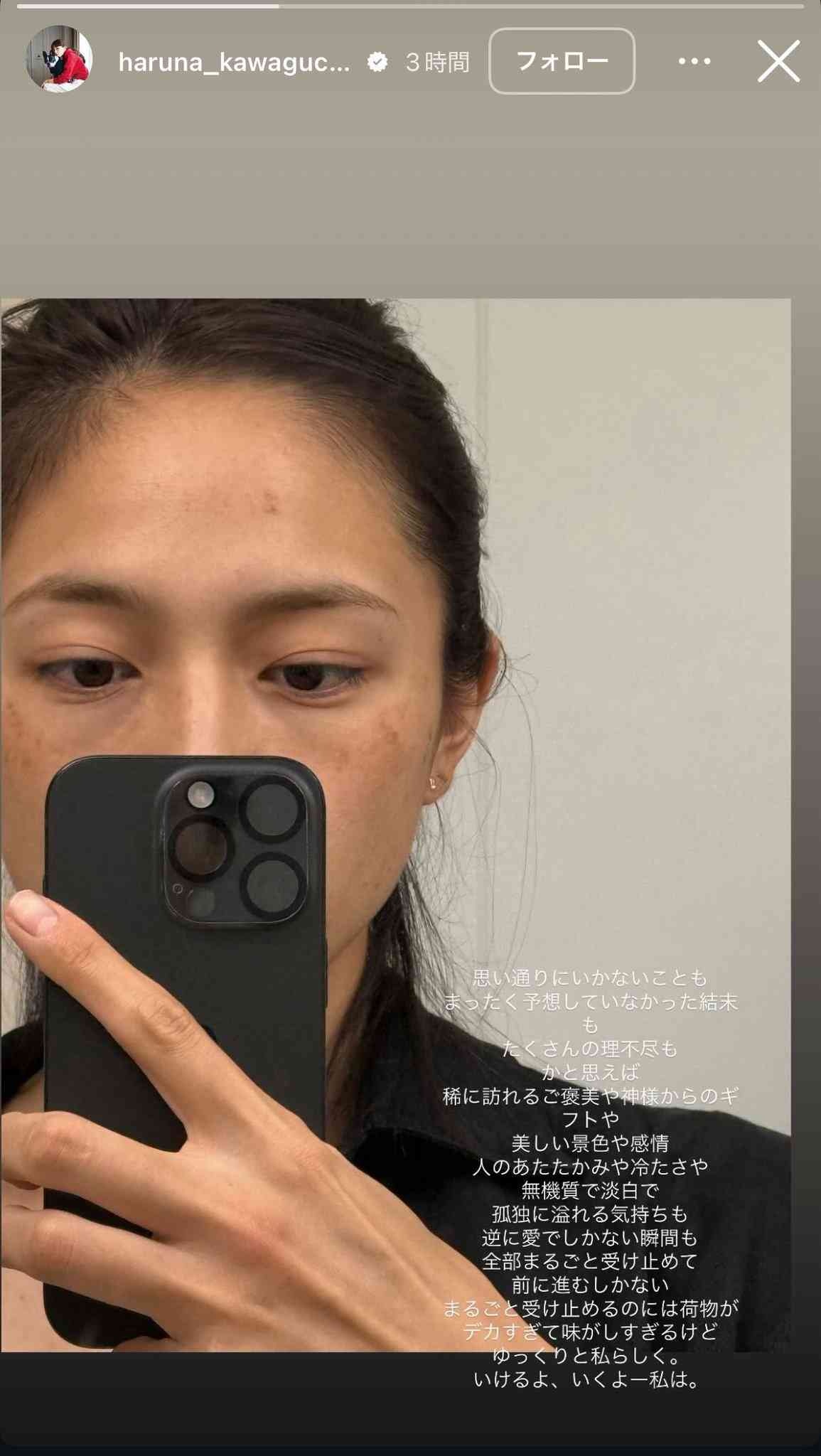 - 川口春奈がシミ隠さないすっぴん意味深投稿、ファン心配「何かあった?」