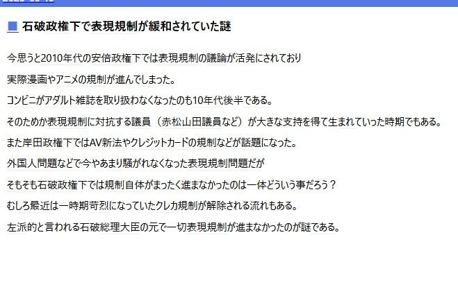左派的と言われる石破総理大臣の元で一切表現規制が進まなかったのが謎である。