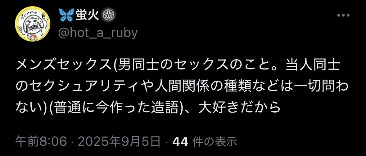 - 23 名前:ここからは表現の自由でイカせていただきます 投稿日時:2025/09/12(金) 00:20:10.14 ID:QhuC6Zgw0