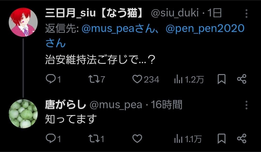 治安維持法という言葉は知っているけど、内容まで深く把握してないのかもな - 117 名前:ここからは表現の自由でイカせていただきます 投稿日時:2025/09/12(金) 12:26:08.21 ID:xZraQJkd0