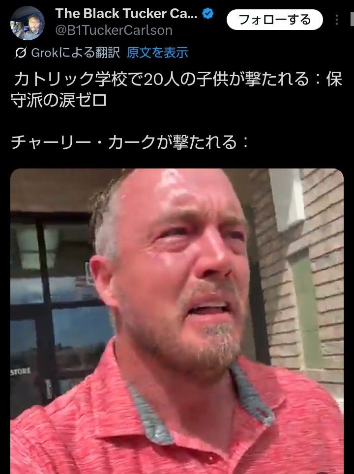 - マジかよ、チャーリー・カークが射殺されたってマジ?あの右翼おじさんが泣いてる動画ってどんな内容なんだろうな。