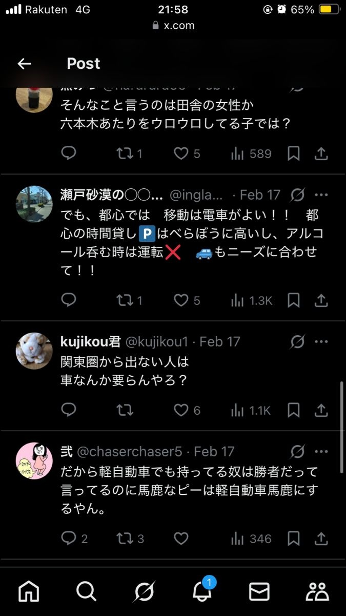 女性、驚愕「なんで東京の人って車持ってないの?貧乏なの?」都民男に効きすぎて炎上🔥