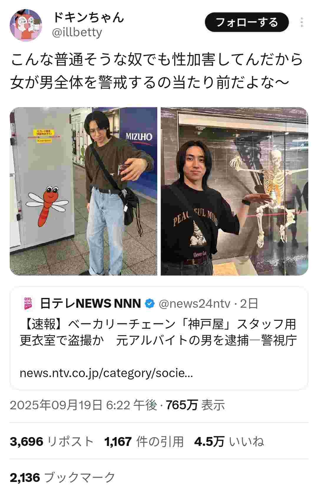 【画像】「こんなマトモそうな男でも性犯罪してるって…女は何を信じればいいの」5万いいね