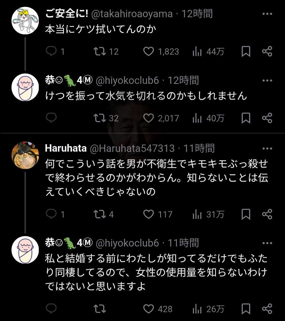 - 小便でびちゃびちゃになる女と同じ使用量になるわけないことがなぜわからんのか