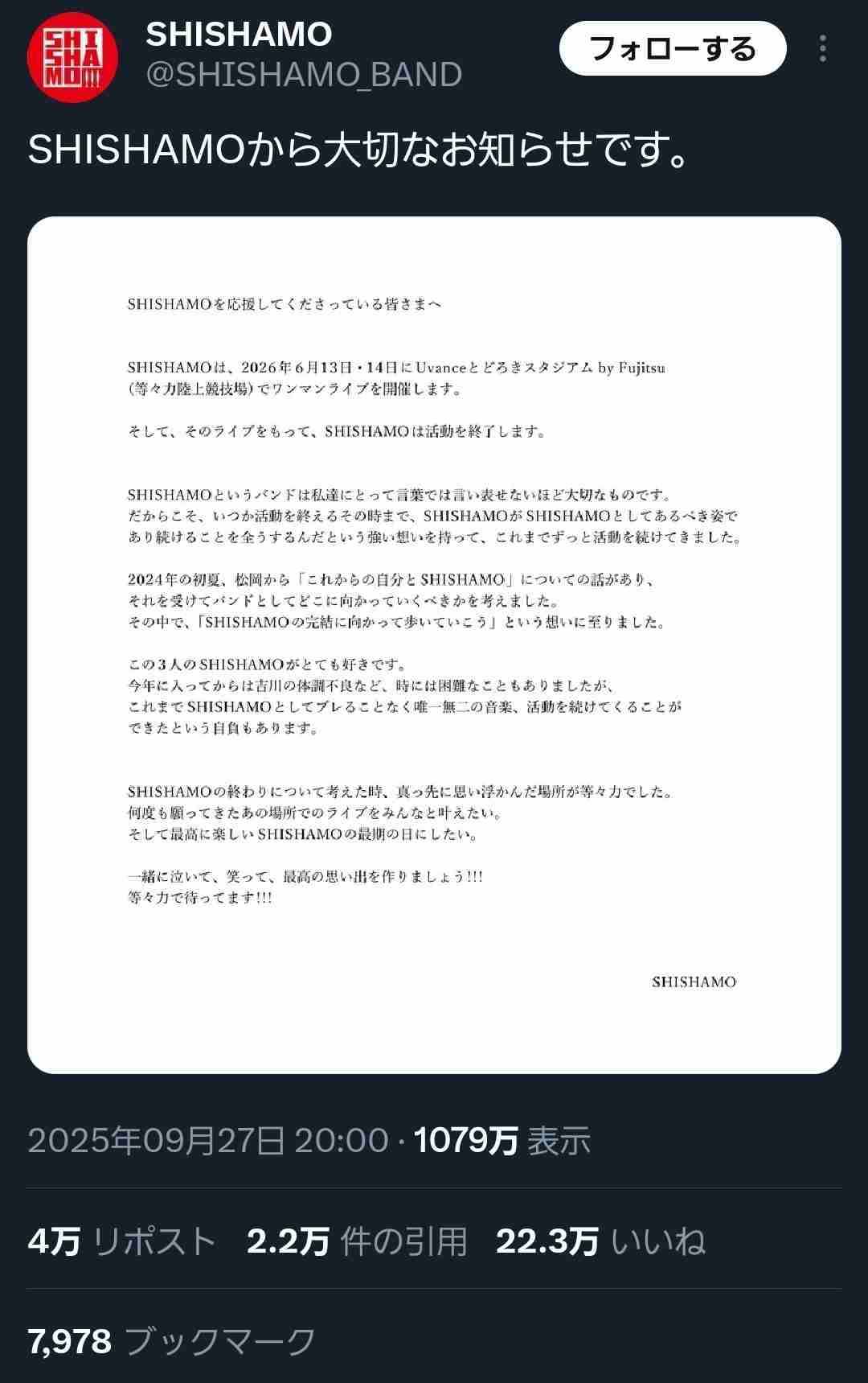 そうすると音楽活動に専念してるのがアレなんだろうね - 30 名前:ここからは表現の自由でイカせていただきます 投稿日時:2025/09/27(土) 22:41:37.16 ID:IYx8zKFJ0